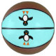 This awesome basketball features a cute penguin character with a white tummy, big blue eyes with black pupils and cute orange feet and beak. This charming little winter bird is sure to delight children and adults. The penguin sits on an icy pale blue background to remind him of his chilly Arctic home.