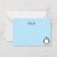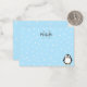 A cute black and white penguin drawing. Baby animal note cards with monogram. Snow and blue background. Edit initial and monogram to customize. Gift idea for kids.