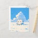 Share a touch of winter cheer with this heartwarming scene of a round, blue-grey penguin chick nestled in a field of fresh, white snow. The digital illustration is rendered in a soft, painterly aesthetic, featuring a crisp and vibrant palette of sky blue, creamy white, and soft rosy cheeks. Against a brilliant azure sky, towering and fluffy white clouds create a whimsical and sunny winter atmosphere. The penguin’s sweet, wide-eyed expression and its soft, downy texture evoke a sense of peaceful seasonal joy. This postcard serves as a beautiful canvas for a heartfelt handwritten message or a serene mini-print to accent your workspace gallery wall. Whether it’s traveling through the mail to a loved one or pinned to your inspiration board, it brings a touch of calm to any setting.