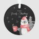 Add a cute touch to your family holiday celebration with this adorable family penguin keepsake ornament. The Christmas ornament has an adorable penguin wearing a Santa hat and scarf and holding a cup of hot cocoa with marshmallows and a candy cane. In the background there is a snowy tree and snowflakes. Add your family name, the year, and the text Family Christmas. Text may be edited per your preference.