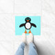This awesome doormat features a cute penguin character with a white tummy, big blue eyes with black pupils and cute orange feet and beak. This charming little winter bird is sure to delight children and adults. The penguin sits on an icy pale blue background to remind him of his chilly Arctic home.