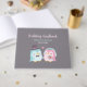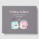 A cute wedding guestbook for the guests to pen their love and wishes for the couple! Design features a blue penguin groom with top hat and bowtie and pink penguin bride with crown veil and a bouquet of flowers. Penguins are mates for rest of their lives!