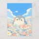 Brighten your correspondence with this heart-melting scene featuring an adorable, chubby penguin nestled among a sprawling field of soft pastel blossoms. The digital illustration is rendered in a gentle, painterly aesthetic, showcasing a vibrant palette of peach, coral, mint, and sky blue. Against a brilliant azure sky, towering and fluffy white clouds create a whimsical, airy atmosphere. The penguin’s sweet, contented expression—complete with a tiny blossom tucked by its ear—evokes a sense of peaceful springtime joy. This postcard serves as a beautiful canvas for a heartfelt handwritten message or a serene mini-print to accent your workspace gallery wall. Whether it’s traveling through the mail to a loved one or pinned to your inspiration board, it brings a touch of calm to any setting.
