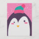The front showcases an endearing illustration of a penguin dressed in a festive hat , surrounded by