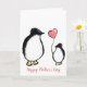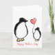 Cute personalized mother's day card showing a penguin and child with a pink heart balloon.