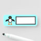 This awesome dry erase name tag features a cute penguin character with a white tummy, big blue eyes with black pupils and cute orange feet and beak. This charming little winter bird is sure to delight children and adults. The penguin sits on an icy pale blue background to remind him of his chilly Arctic home.
