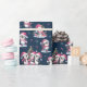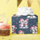 This navy blue and pink Christmas wrapping paper features a funny Xmas pattern of penguins in pink apparel celebrating the winter holidays. Cute penguins decorate Christmas trees, meet family and friends, and go ice skating, so this design is fun for festive gift wraps.
