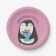Cute Penguin Pink Personalised Birthday Paper Plate