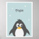 Children's poster of a cute pingvin on an blue background. The perfect print to add in the kids' room or as a funny decoration in your home interior.