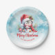 Cute Penguin Red and Blue Custom Merry Christmas Paper Plate