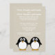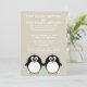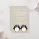 An informal wedding invitation with a clean, modern cartoon drawing of a penguin.