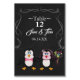 Cute penguin table card features A penguin bride and groom in their wedding attire The background is a chalkboard with chalk swirls. Customise with your wedding information to suit your needs. Be sure to play around with the font (text) style. Zazzle has brand new fonts added to their collection of text! Artwork by ChanDraws Art & Design