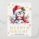 Cute Penguin White Red Gold Merry Bright Christmas