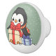 Cute penguin with Christmas gifts in the snowfall Ceramic Knob
