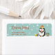 NewParkLane - Holidays Return Address Labels, featuring a cute little cartoon penguin with a warm winter hat and Christmas presents, against a green snowy background.