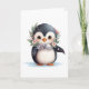 Cute Penguin With Scarf and Holly BLANK Holiday Card