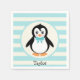Cool, retro, colourful kid's Cute Penguin with Turquoise Bowtie design on white stripes, striped pattern with vintage feel. Perfect gift for baby, toddler, kids, children, teens, or adults! Personalised the design by adding a child's name or custom text. Visit our store, Birthday Party House, for more great customisable boy and girl products!