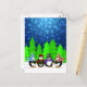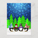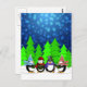 Cute Penguins with Festive Snowflake Design Scarves and Hats Singing Carols on Snowy Christmas Eve Night Illustration Drawing Postcard