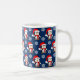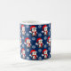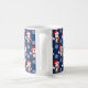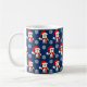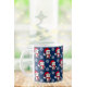 Colourful Christmas pattern with penguins and snowflakes on a blue background.