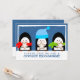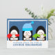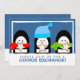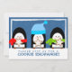 Three little penguins hold their yummy cookies in this sweet cookie party invitation.