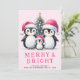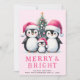 Cute Penguins Family Merry & Bright Pink Christmas Holiday Card
