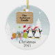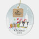Our unique dated family of 2 christmas ornament features the cutest family of two penguins set on a snow & christmas tree filled blue background! Personalise with your information and date and you're all set to go! Wonderful dated keepsake gift for your family christmas tree and a great addition to you christmas ornament collection.