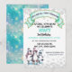 Invite your guests with this cute birthday party invitation featuring adorable little penguins with vibrant elements on a light green background. Add your event details to this easy-to-use template to make it a one-of-a-kind invitation.