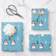 Cute Penguins on Light Blue with Snowflakes Wrapping Paper Sheet