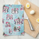 Cute Penguins Pattern Blue and Pink Christmas Tea Towel