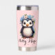 Cute Penguins Pink Custom Name & Initials Insulated Tumbler