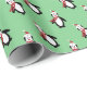 Cute Penguins Santa Hat Light Green Christmas Wrapping Paper