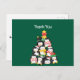 This thank-you card features an adorable stack of cheerful penguins arranged in the shape of a Christmas tree. Each penguin is dressed in festive winter attire, with cosy scarves, Santa hats, and holiday-themed accessories. At the top of the "penguin tree," a bright yellow star with a red bow adds a final touch of holiday spirit. With their rosy cheeks and joyful expressions, these penguins bring a playful, heartwarming vibe to the card, making it perfect for sharing holiday gratitude and joy with loved ones.