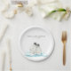 Cute arctic themed paper plates featuring a minimalist watercolor illustration of cute penguins.