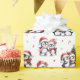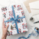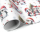 This cute Christmas wrapping paper features a unique pattern of penguins in red apparel having fun while celebrating the winter holidays. Cheerful penguins decorate Christmas trees, meet family and friends, and ice skates, so this design is perfect for festive gift wraps. This design is on a white background.
