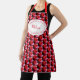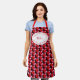 Cute Personalised Apple Apron design features all over print of a realistic apple image. The centre of design features a white oval as background to the cute saying, "A Happy Cook is a Good Cook. Let's Keep the Cook Happy!" This text is in red lettering and encircles the name you supply, which is in the same red lettering.