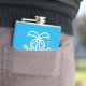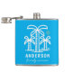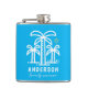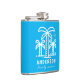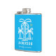 Commemorate your family or reunion with a unique custom flask. This design features teal palm trees and a yellow sun perfect for the beach themed trip. Personalise with your family last name and the year of the family reunion. Happy fun in the sun! The background colour can be changed to match your shirts or to any colour you'd like.
