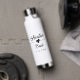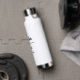 Simple minimalist text Bride water bottle. Black and white with cute script text. You can personalise the wedding party position, name and wedding date.