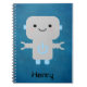 Cute Personalised Cartoon Robot Blue Notebook
