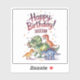 This cute personalised green dinosaur happy birthday sticker design shows adorable watercolor dinosaurs of various colours. This design also shows festive confetti as well as the phrase "happy birthday". You can add your name. Enjoy!