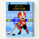 Super cute hockey design for the budding Ice hockey star in your family. Features a young hockey player in red white and black uniform on a hockey arena. The scoreboard is customisable with your own text and name