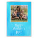 A pretty watercolor effect blue design is featured here. The stylish text reads, "Happy Mother's Day!" It's easy to insert a personal photo to celebrate mum on her special day.