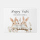 Cute personalised watercolor rabbit Easter doormat. Easy to change the text. Pretty design for the holiday.