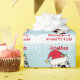 Funny Cute smiling soccer ball with Santa hat with holly and berries which can be full personalised with the baby or Childs name to create a unique soccer greetings designer wrapping paper