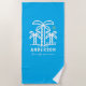 Commemorate your family or reunion with these unique custom beach towels. This design features white palm trees and a yellow sun perfect for the beach themed trip. Personalize with your family last name and the year of the family reunion. Happy fun in the sun! The background color can be changed to match your shirts or to any color you'd like.