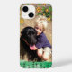 Cute iPhone 14 case with flowers and green plants border. Add your favorite photo to customize your case.