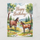 This cute watercolor personalized horse birthday postcard is perfect for anyone who loves horses. The front of this card has two watercolor horses running across a field of flowers. The horses are surrounded by trees, flowers, and other greenery. The inside includes the phrase "Wishing you a very happy birthday" as well as a place to add a name. You can keep this message or change it if you would like. Enjoy!