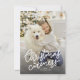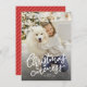 "Christmas Cuteness" hand lettered in white against your adorable pet photo and red striped back with place for custom text