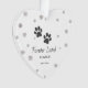Honour the unconditional love and cherished memories of a beloved pet with this elegant heart-shaped memorial ornament. Crafted with a crisp white ceramic base and adorned with delicate snowflake accents, this keepsake beautifully balances comfort and elegance. At the centre, paw print artwork symbolises the lasting bond between you and your furry friend, making it a heartfelt reminder that they are “Forever Loved.” Personalised with your pet’s name and special date, this ornament is a meaningful way to keep their memory alive during the holiday season and beyond. The heart shape embodies love and devotion, while the snowflakes capture the peaceful spirit of winter, offering a sense of comfort during a difficult time. Hung with a soft ribbon, this ornament adds a touching tribute to your Christmas tree or can be displayed year-round as a reminder of the paw prints left on your heart. Thoughtful and timeless, it also makes a comforting gift for anyone grieving the loss of a beloved pet, ensuring their memory shines bright for years to come.