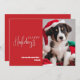 This cute pet photo Holiday Card features a funny quote "I'm on the nice list... I think", on a red background. The photo and text can be personalised using the design tools.