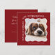 Send your family and friends a fun and colourful red holiday greeting with this cute card. It features a favourite photo of your family pet, with the quote NOT A CREATURE WAS STIRRING in a modern white typography . Personalise with your family name. The reverse side allows you to personalise your holiday greeting.